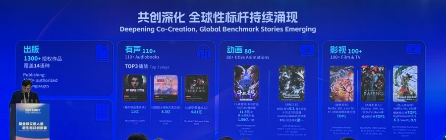 世界范围内,一系列网文IP改编的标杆作品,正不断涌现。目前,阅文集团已在海外推出超1300部出版作品(覆盖14个语种)、2100余部漫画、80部动画、超100部影视作品等。