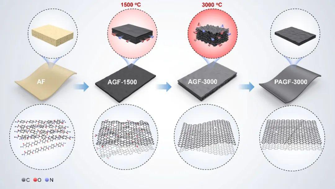 该研究揭示了芳纶前驱体在石墨膜制备中的独特优势,证明了氮掺杂与低氧含量前驱体可提升石墨膜结晶质量和双向导热特性,其双向导热性能突破可为 5G 芯片、功率半导体等高功率器件热管理提供关键材料和技术支撑。