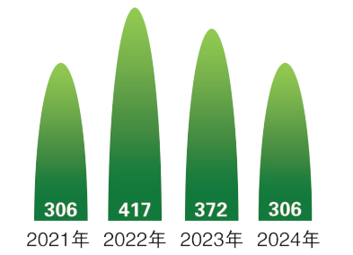 “十四五”期间,钢铁行业新增绿色工厂数量逐年递增,2021年度至2024年度累计新增126家绿色工厂。绿色工厂作为绿色制造的核心载体,体现了企业在用地集约化、原料无害化、生产洁净化、废物资源化、能源低碳化等方面的综合水平。