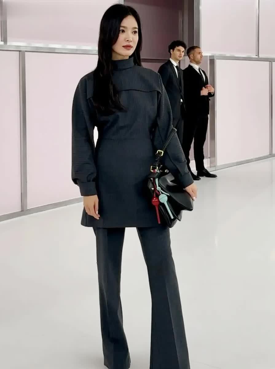 时尚感与气质始终在线的宋慧乔,此次造型依旧稳定发挥。半高领收腰上衣搭配同色系长裤,将干练利落的女强人风范展现得淋漓尽致,与她的气场相得益彰。尽管服饰仅有一个颜色,但上衣富有层次感的设计,让整体造型避免了呆板。不得不承认,宋慧乔确实是韩国女星中最会穿搭的之一!