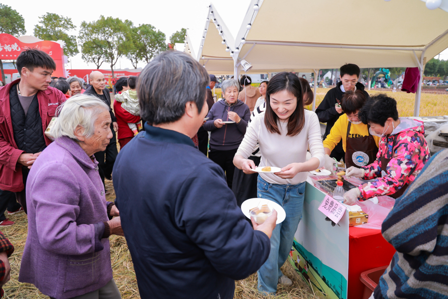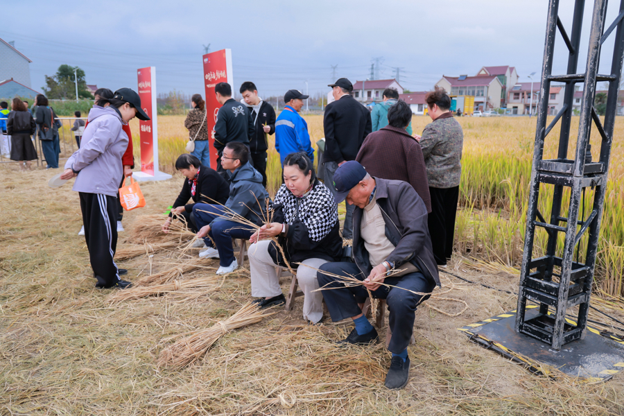 午后的市集率先点燃氛围,21个摊位分成四大主题区,把家的温馨与纯粹的欢乐搬进和美乡间。套圈、投壶游戏前排起长队,大人小孩轮番上阵,清脆笑声传遍全场;芦苇编织、土布手作摊位前,老匠人指尖翻飞,传统技艺化作精巧物件,吸引村民们驻足观赏;在割稻、搓麻绳的农事体验区,长辈带着孩子重温农耕场景,勾起童年记忆;80 后零食铺里,怀旧零食唤醒几代人的共同回忆,时光仿佛慢了下来;集市上,泥来咖啡、农家小吃香气扑鼻,满是熟悉的家乡味,让人温暖又踏实。