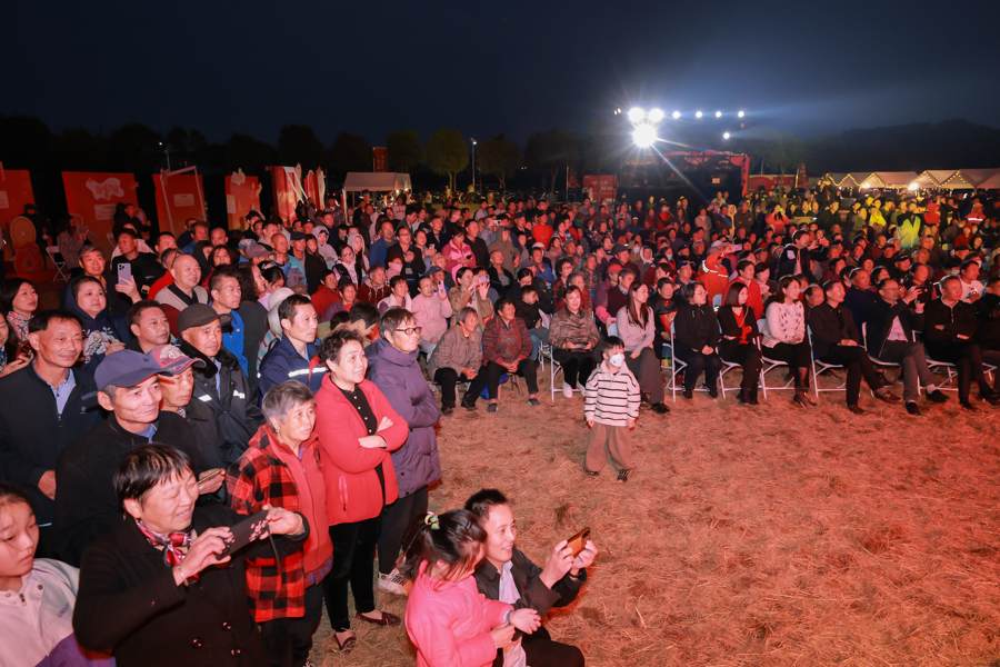 傍晚时分,激昂的《鼓上舞》燃爆全场,地爆球腾空而起、五彩气球缓缓升空,村民们搬来小板凳围坐舞台前,舞蹈《只此青绿》《嬉舞扇韵》、沪语情景剧、诗朗诵、歌舞《等你来》等乡土舞台好戏接连上演,诉说着村里的“和美”故事,尽显乡村蓬勃朝气。