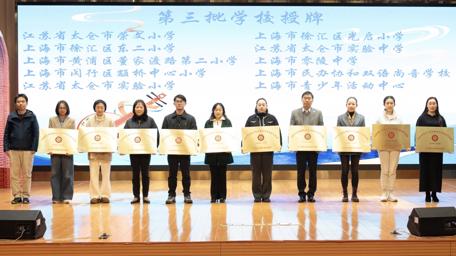 11月18日下午,“智创未来——长三角中小学江南丝竹联盟第三批学校授牌暨展演”活动在上海市徐汇中学启幕。随着江苏省太仓市实验小学、上海市青少年活动中心等10个单位接过授牌,这个致力于非遗传承的校园联盟“朋友圈”进一步扩容,江南丝竹这颗国家级非遗明珠,正以更年轻的姿态扎根长三角校园。